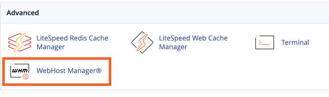 Wil je daarna direct inloggen op het WHM, dan kun je op WebHost Manager klikken.