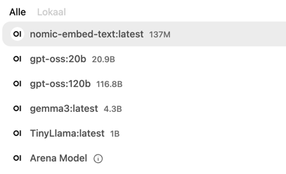Binnen de web interface kun je kiezen welk model je wilt gebruiken, bijvoorbeeld: